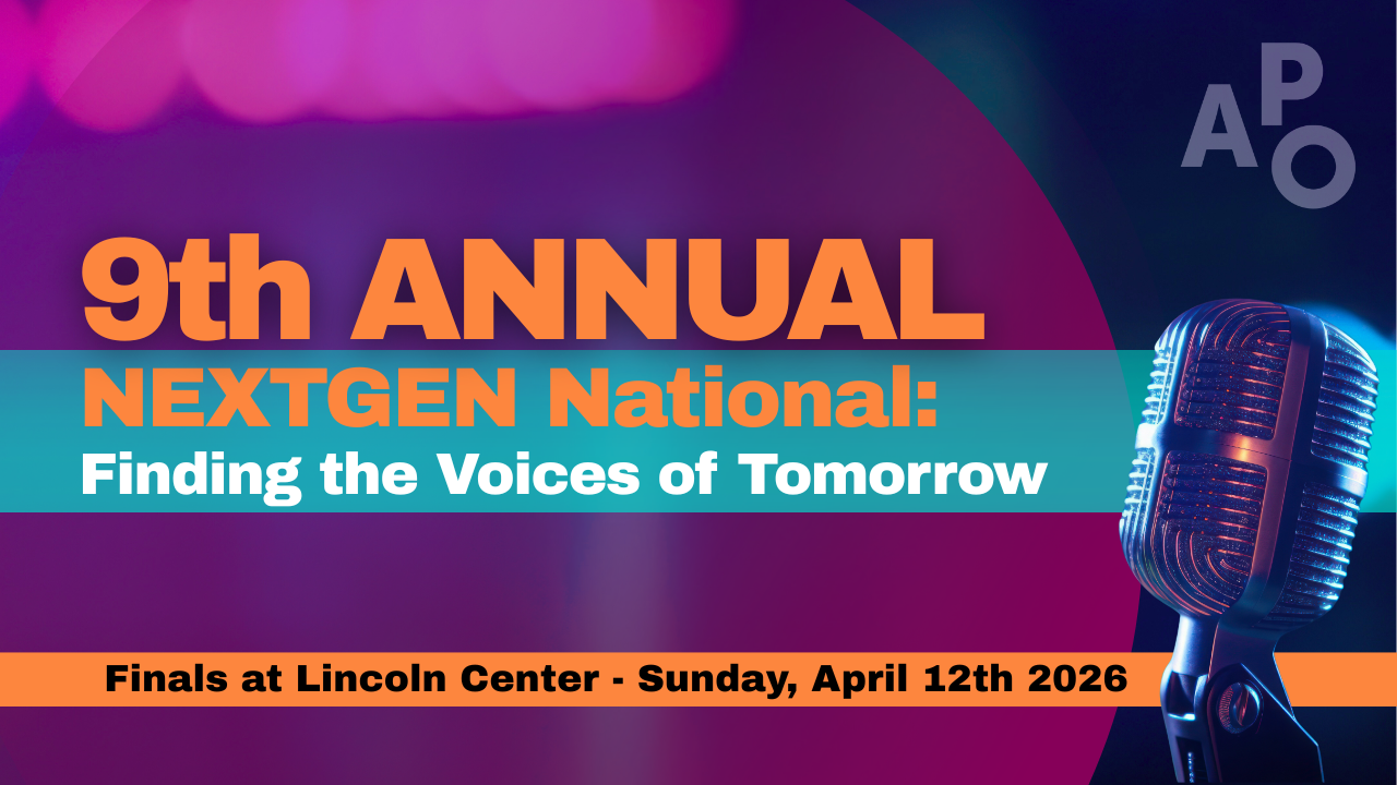From over 500 applicants and then down to 25 Semi-Finalists, these 10 Vocalists have made their way to perform live at The David Rubenstein Atrium at Lincoln Center! With the help of YOUR VOTE, we'll crown the winners of our 9th Annual NextGen Vocal Competition! NextGen Winners will receive cash prizes and paid professional performance opportunities with APO throughout our upcoming seasons.